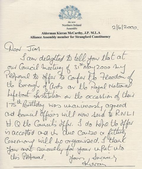 the Borough of Ards' to the RNLI in recognition