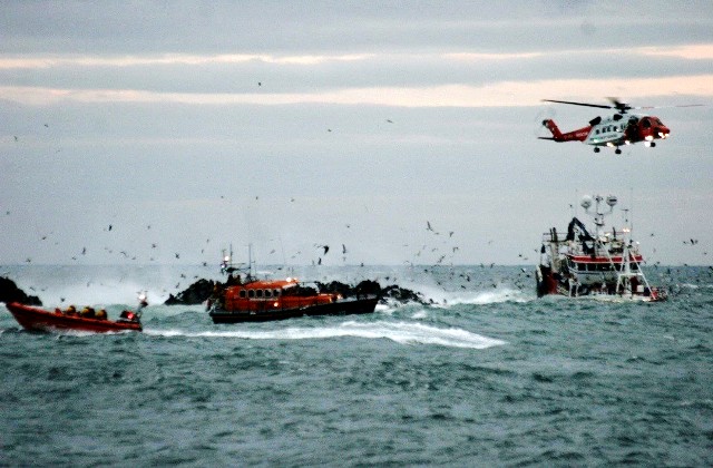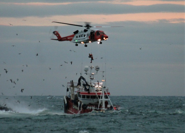 airlifting of the fishing boat's crew to safety