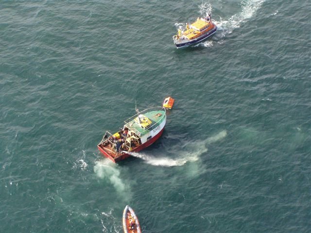 located by lifeboat crew and taken under tow